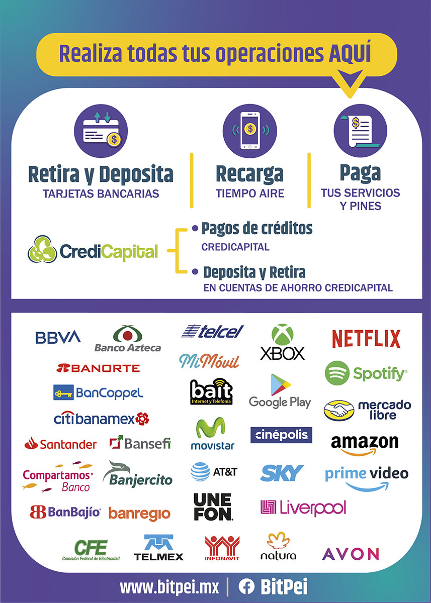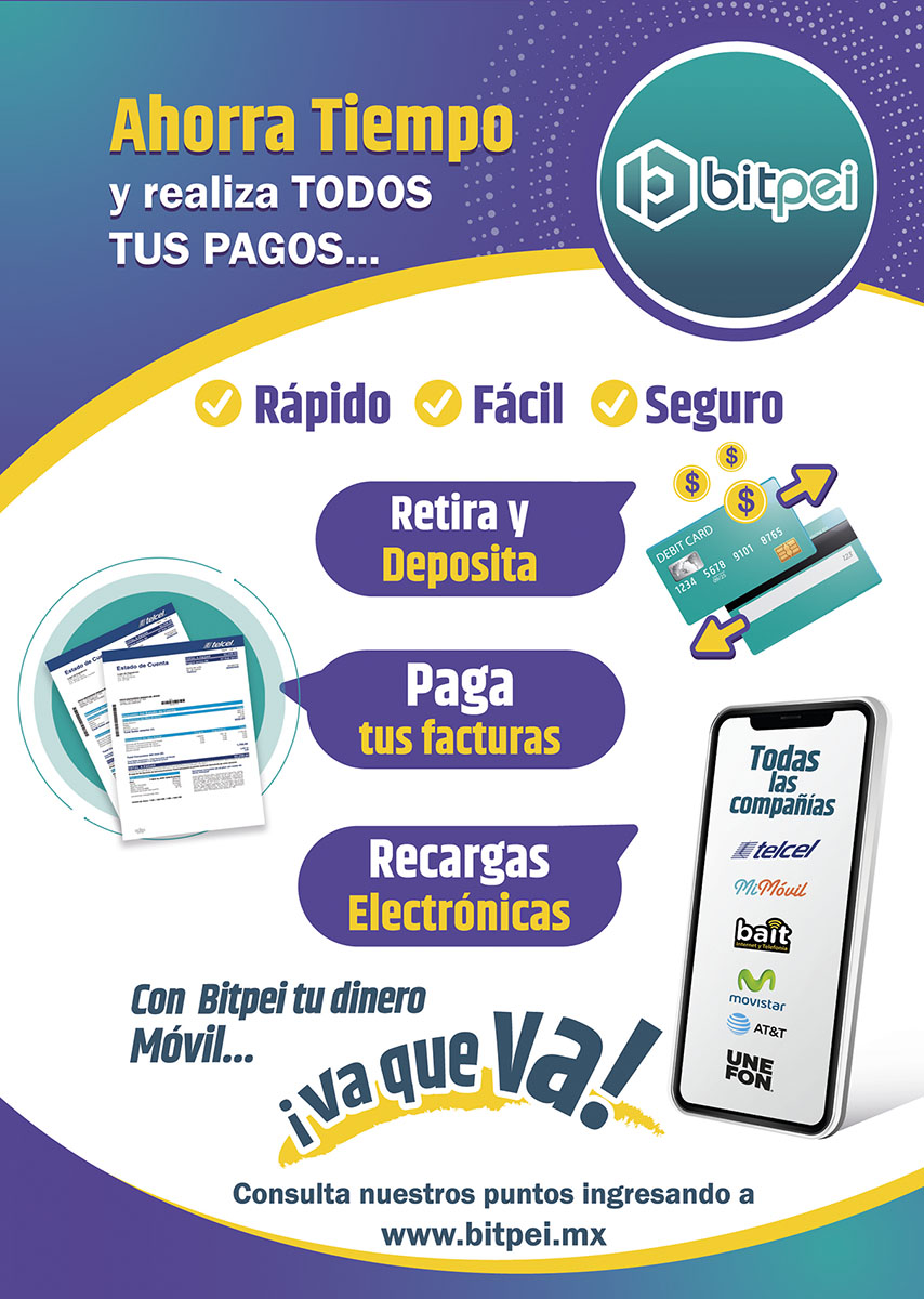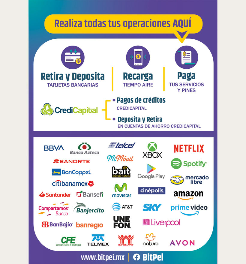 BitPei pone a tu disposicion recursos en formato PDF para impresión para que puedas colocarlo en tu negocio o archivos JPG que puedes utilizar para tus estados en tus redes sociales.